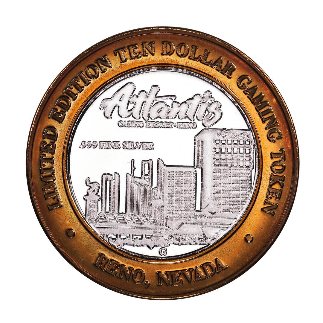 One .999 Fine Silver Atlantis Casino & Resort Reno, NV $10 Limited Edition Gaming Token.