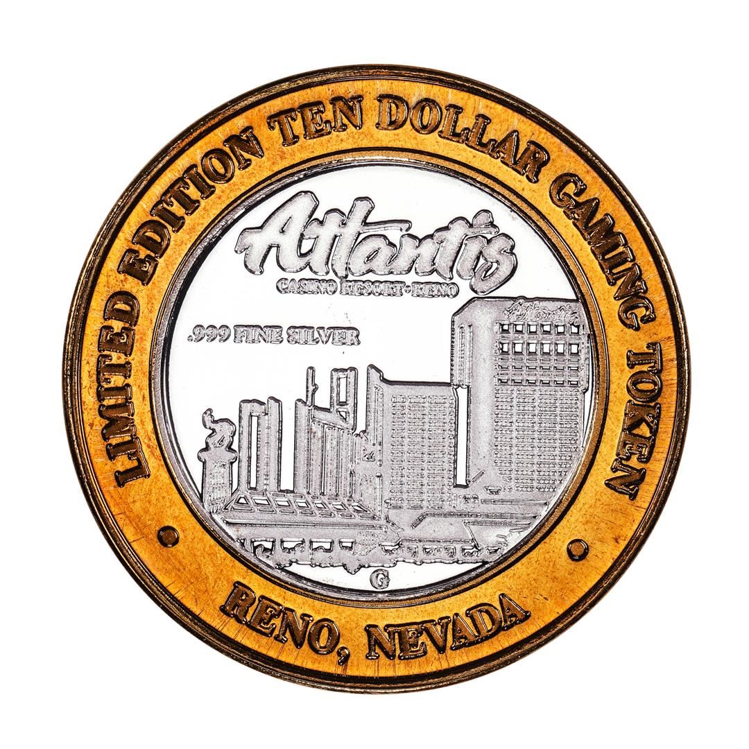 One .999 Fine Silver Atlantis Casino & Resort Reno, NV $10 Limited Edition Gaming Token.