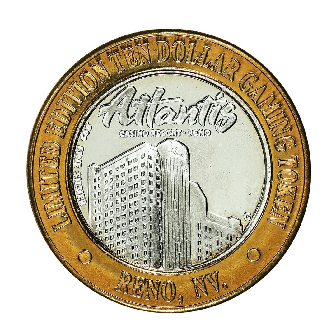 One .999 Fine Silver Atlantis Casino & Resort Reno, NV $10 Limited Edition Gaming Token.