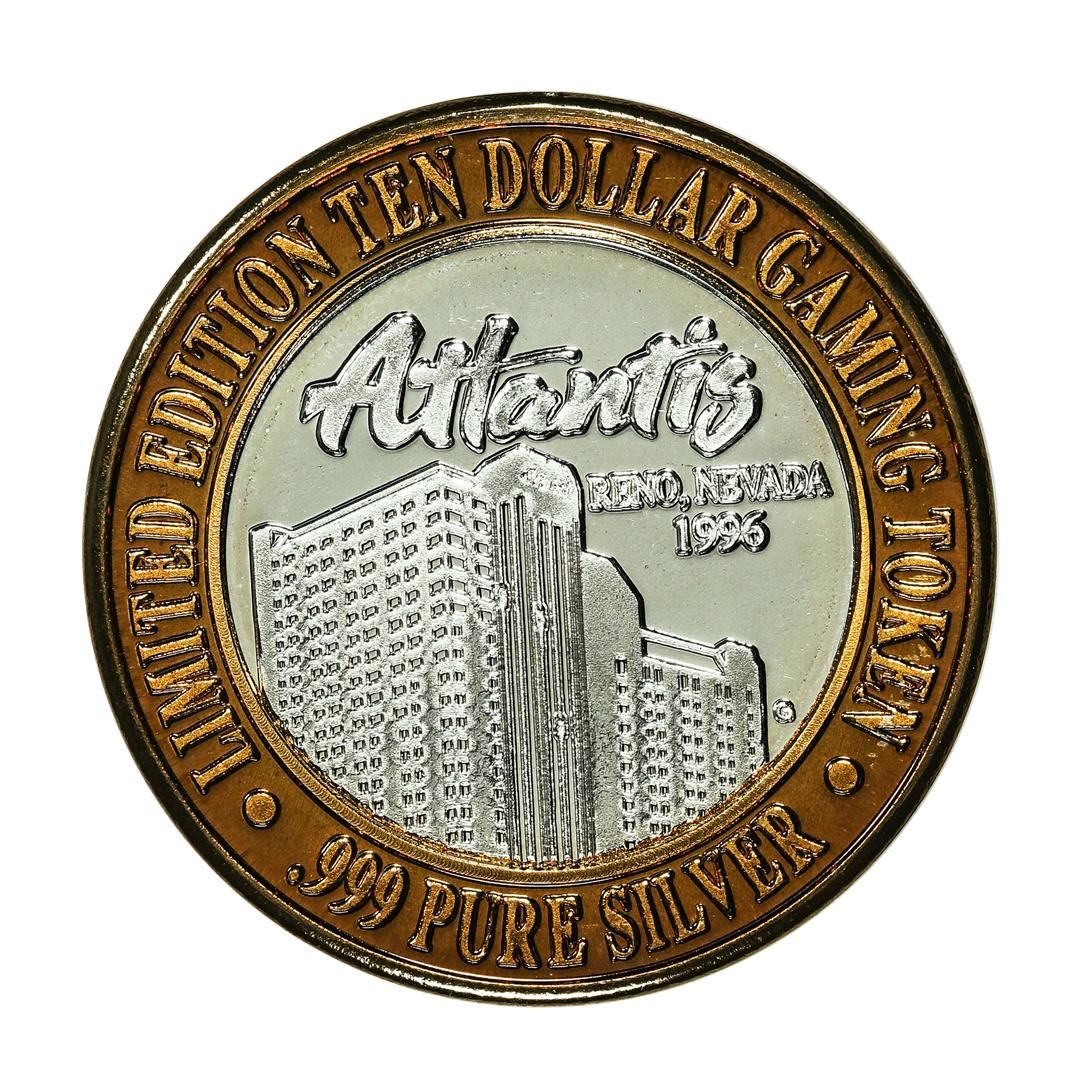 One .999 Fine Silver Atlantis Casino & Resort Reno, NV $10 Limited Edition Gaming Token.