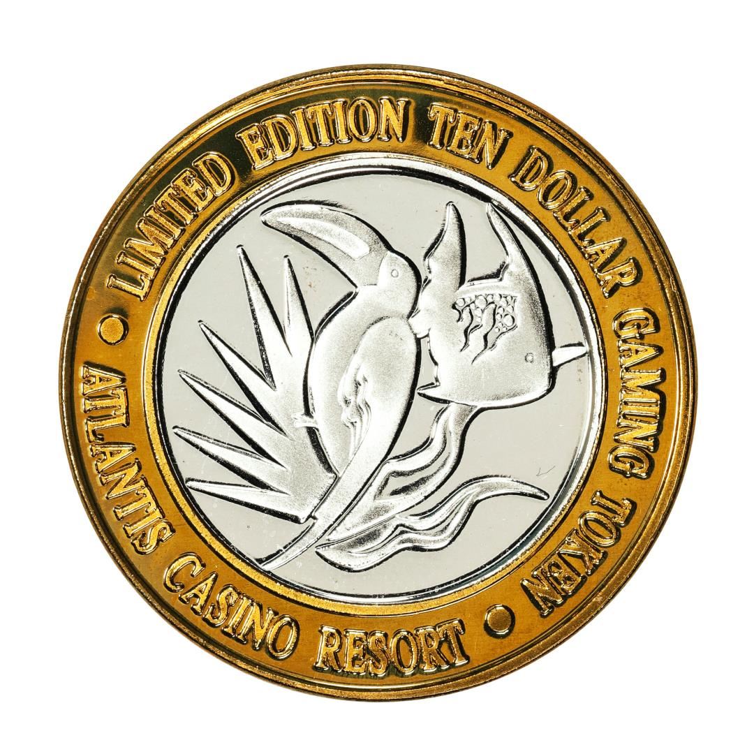 One .999 Fine Silver Atlantis Casino & Resort Reno, NV $10 Limited Edition Gaming Token.