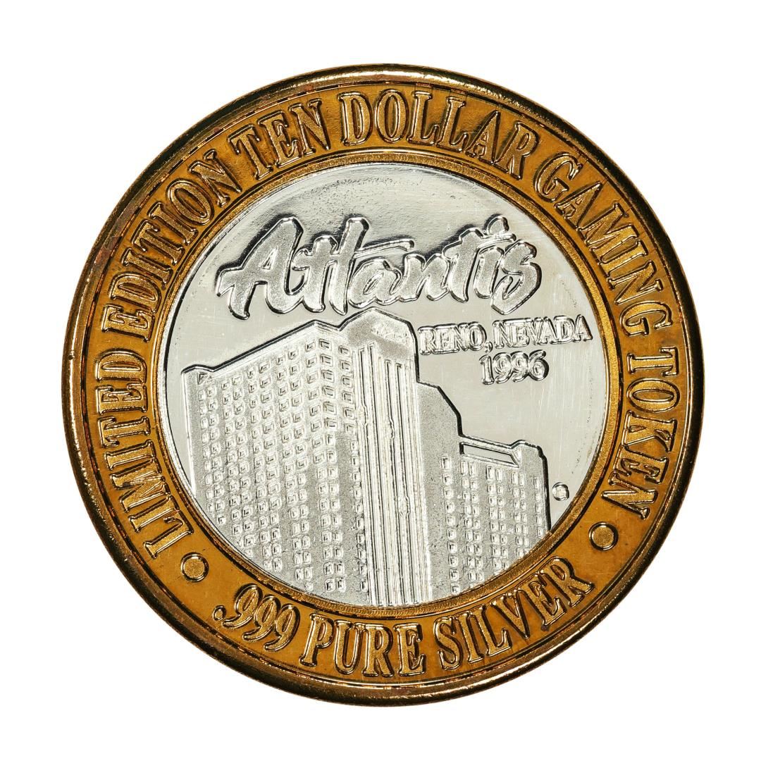 One .999 Fine Silver Atlantis Casino & Resort Reno, NV $10 Limited Edition Gaming Token.