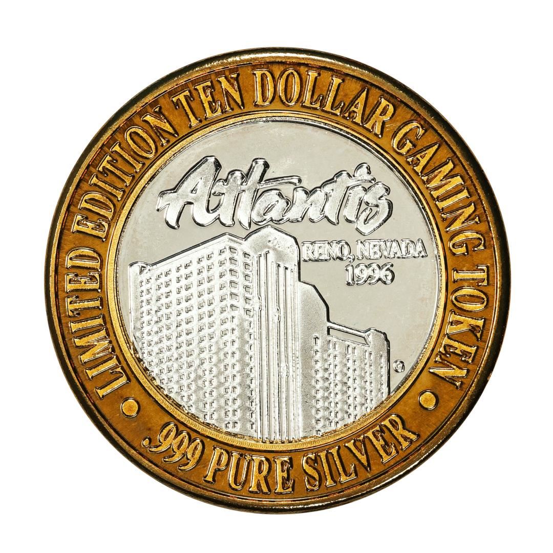 One .999 Fine Silver Atlantis Casino & Resort Reno, NV $10 Limited Edition Gaming Token.
