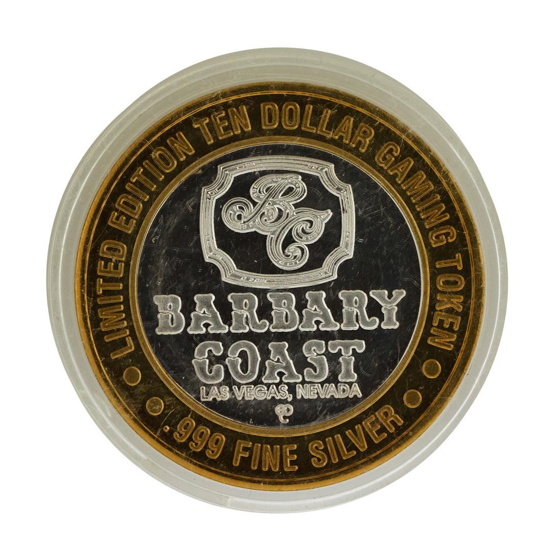 One .999 Fine Silver Barbary Coast Casino Las Vegas, NV $10 Limited Edition Gaming Token.