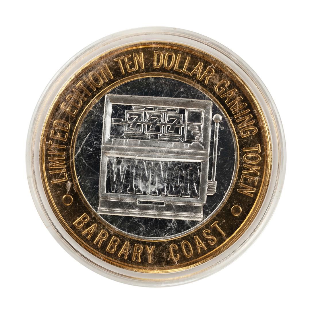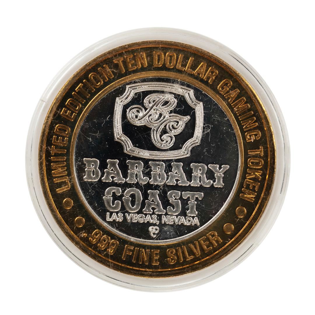 One .999 Fine Silver Barbary Coast Casino Las Vegas, NV $10 Limited Edition Gaming Token.