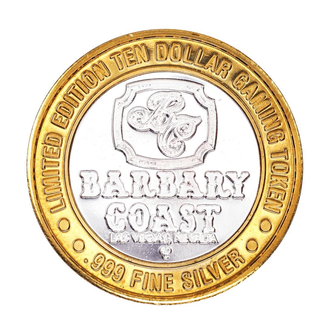 One .999 Fine Silver Barbary Coast Casino Las Vegas, NV $10 Limited Edition Gaming Token.