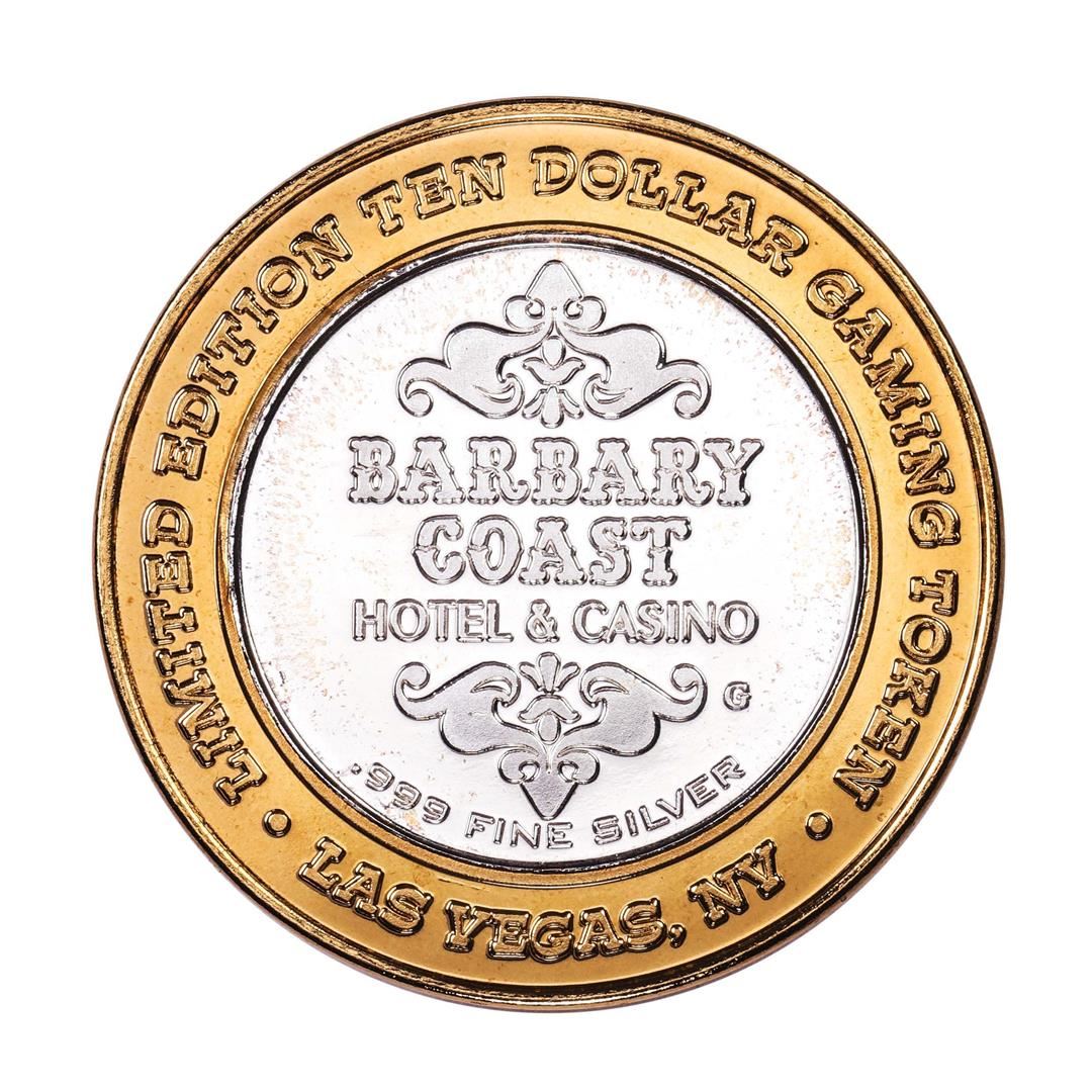 One .999 Fine Silver Barbary Coast Las Vegas, Nevada $10 Limited Edition Gaming Token.