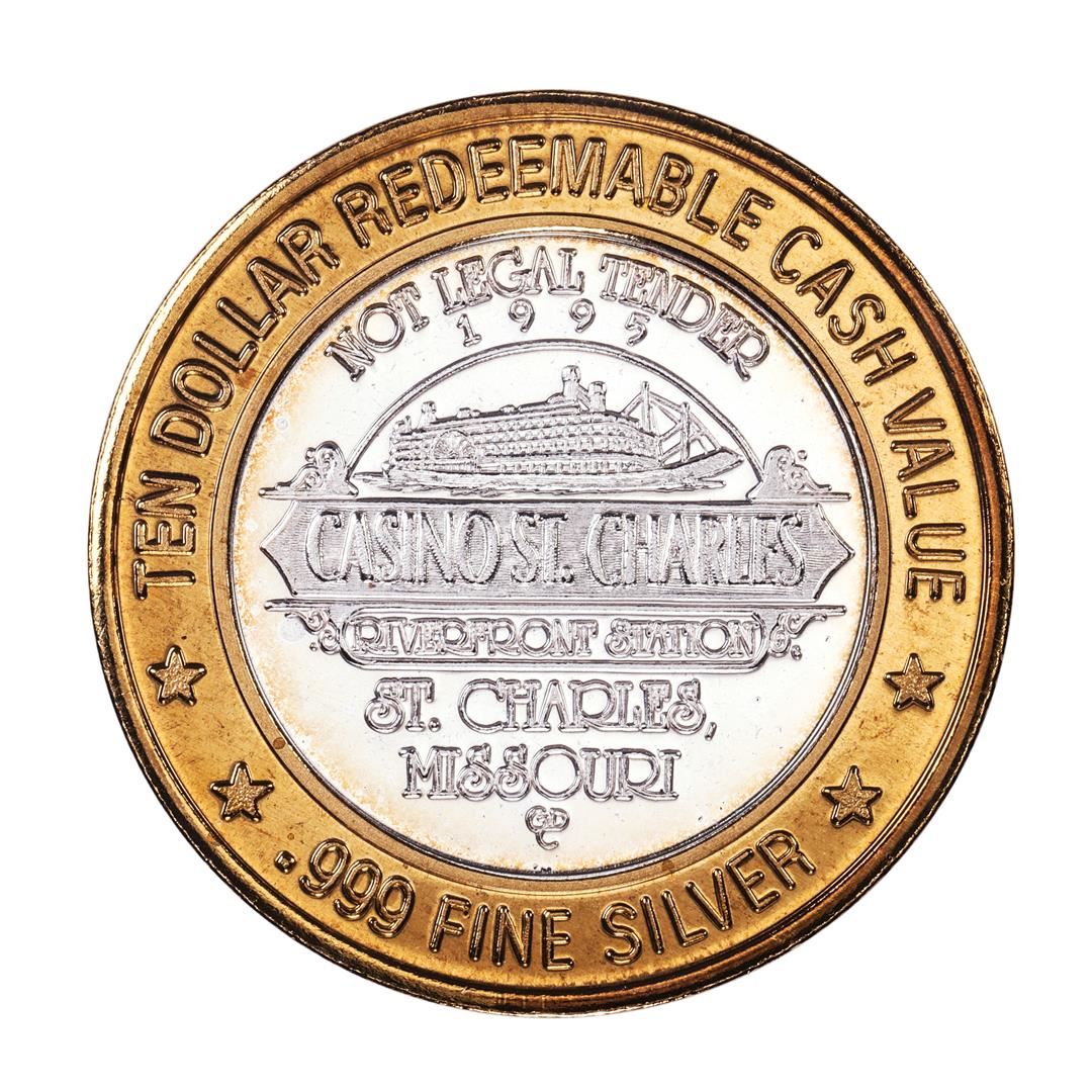 One .999 Fine Silver Casino St. Charles Riverfront $10 Limited Edition Gaming Token.