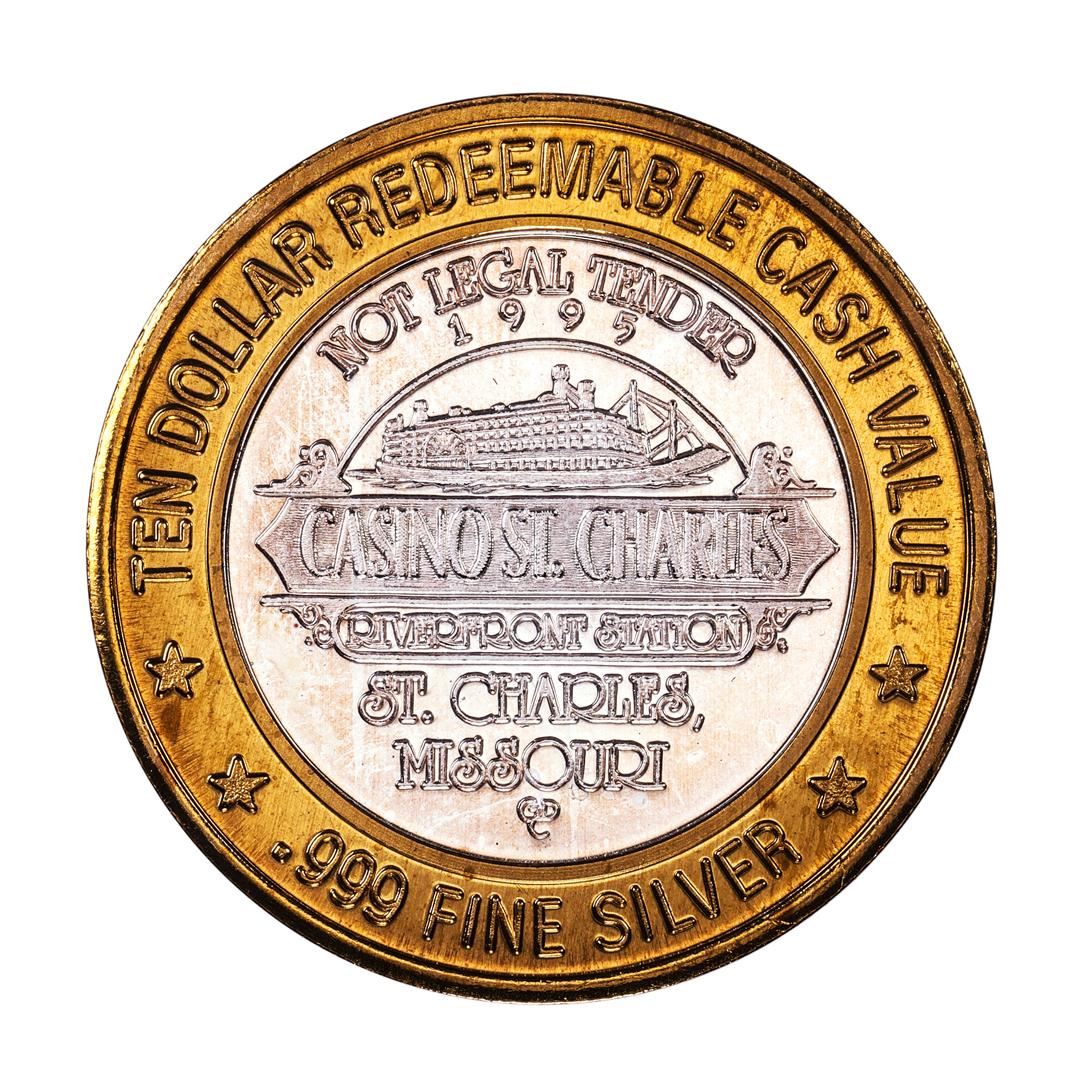 One .999 Fine Silver Casino St. Charles Riverfront $10 Limited Edition Gaming Token.