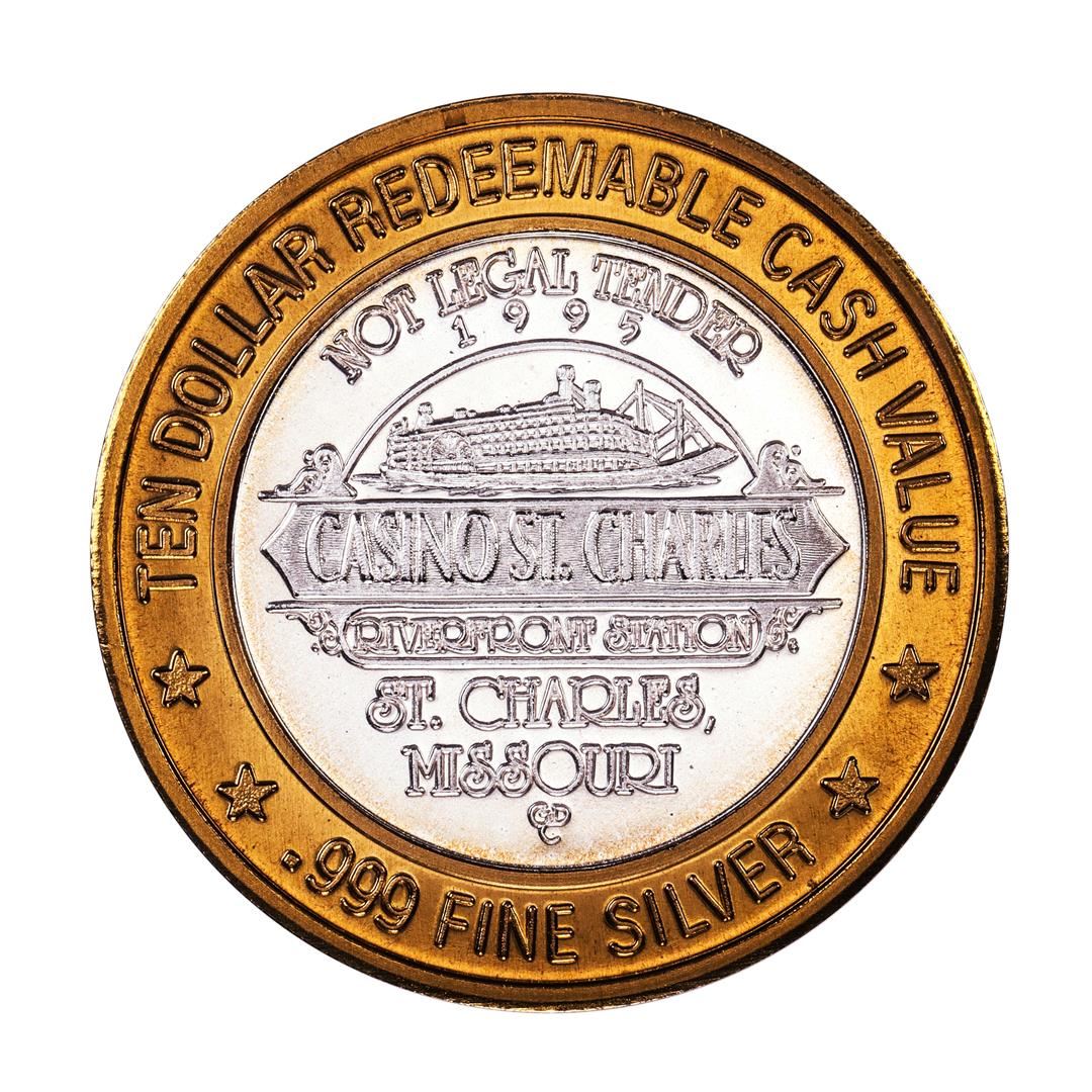 One .999 Fine Silver Casino St. Charles Riverfront $10 Limited Edition Gaming Token.