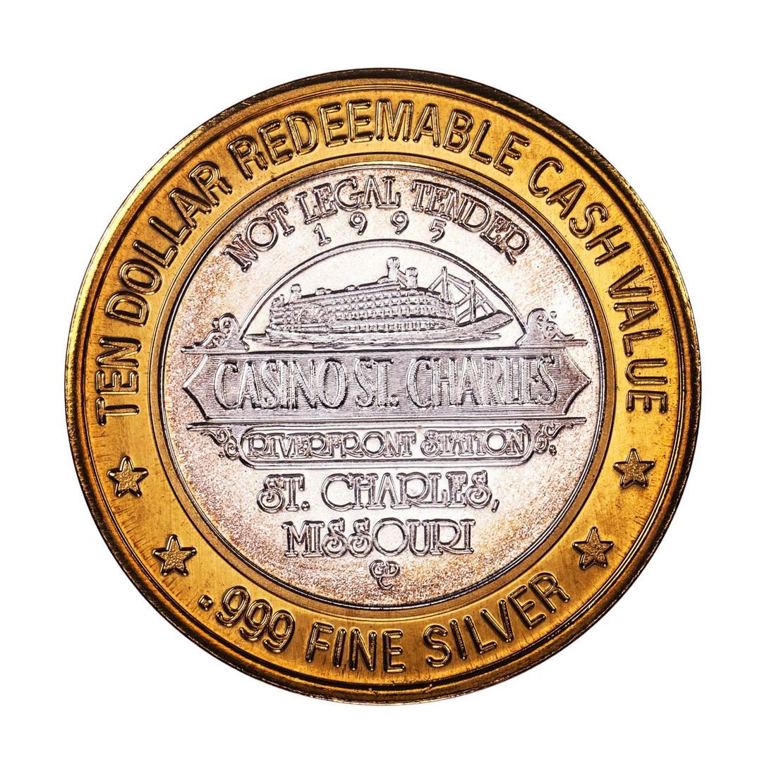 One .999 Fine Silver Casino St. Charles Riverfront $10 Limited Edition Gaming Token.