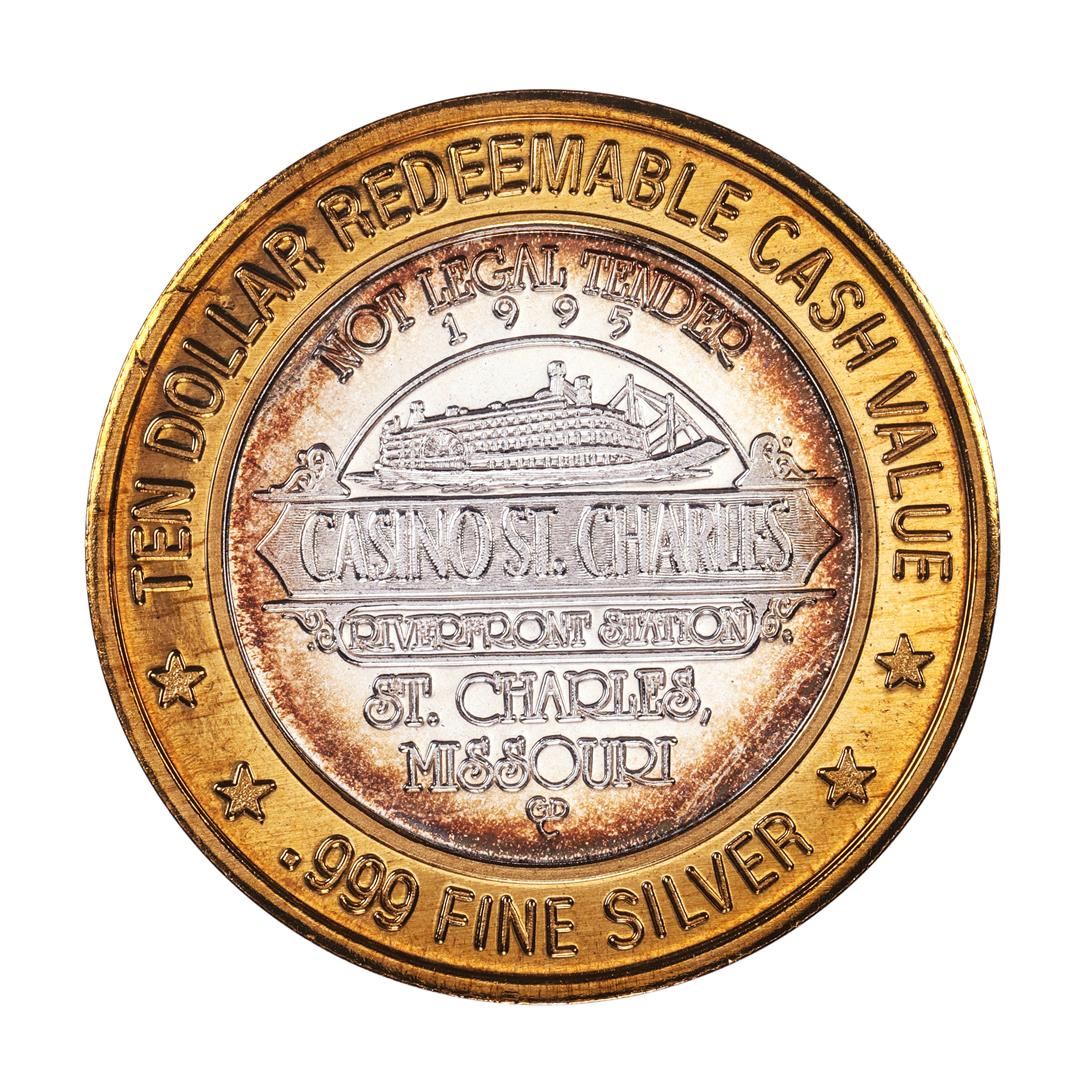One .999 Fine Silver Casino St. Charles Riverfront $10 Limited Edition Gaming Token.