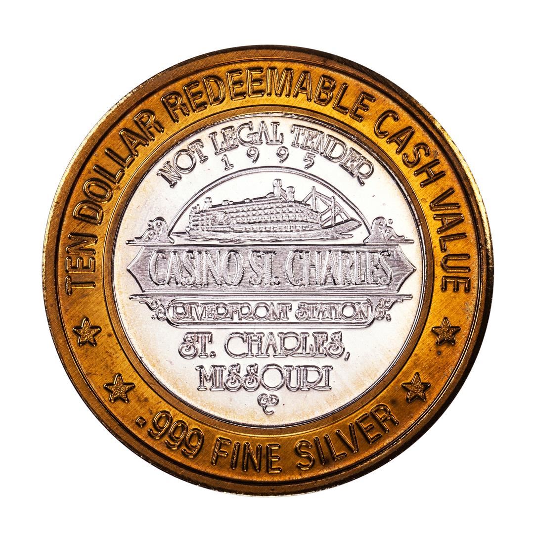 One .999 Fine Silver Casino St. Charles Riverfront $10 Limited Edition Gaming Token.