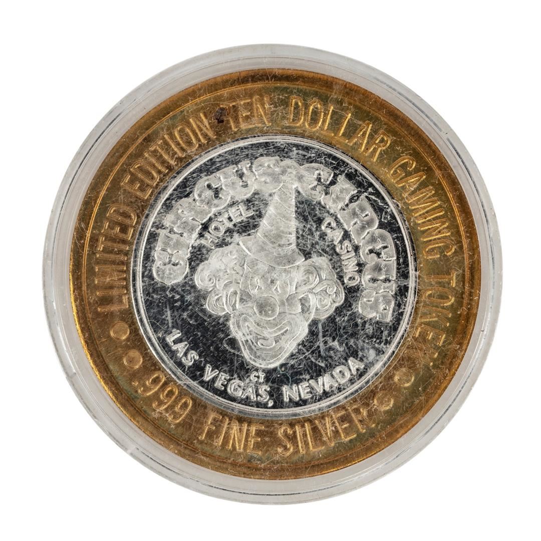One .999 Fine Silver Circus Circus Las Vegas, Nevada $10 Limited Edition Gaming Token.