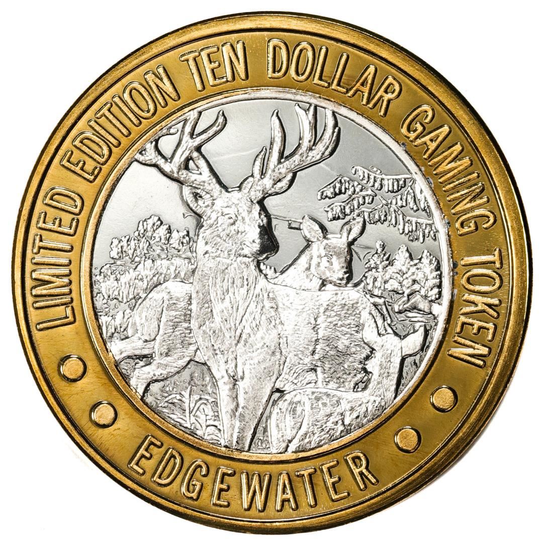 .999 Fine Silver Edgewater Laughlin, Nevada $10 Limited Edition Gaming Token