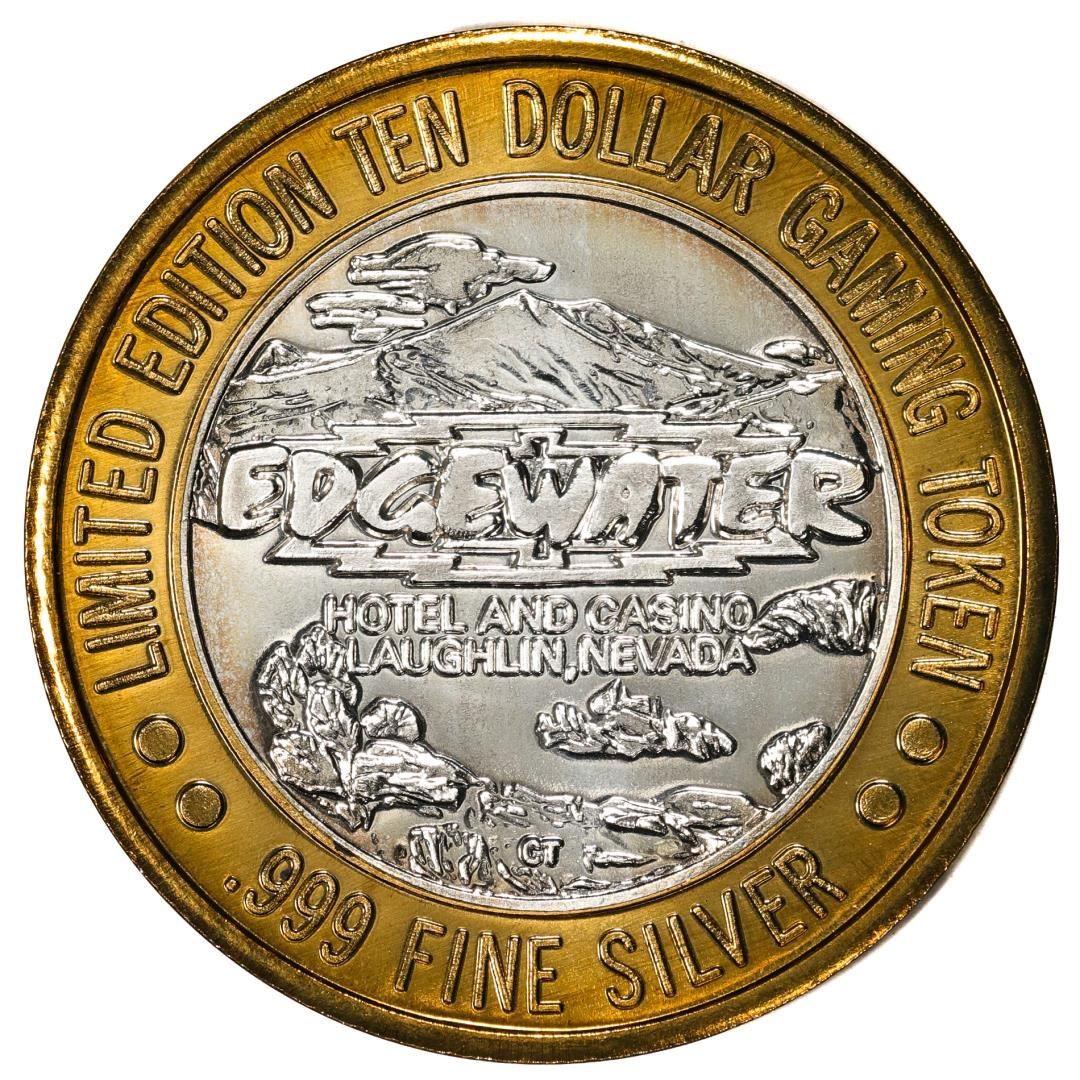 .999 Fine Silver Edgewater Laughlin, Nevada $10 Limited Edition Gaming Token