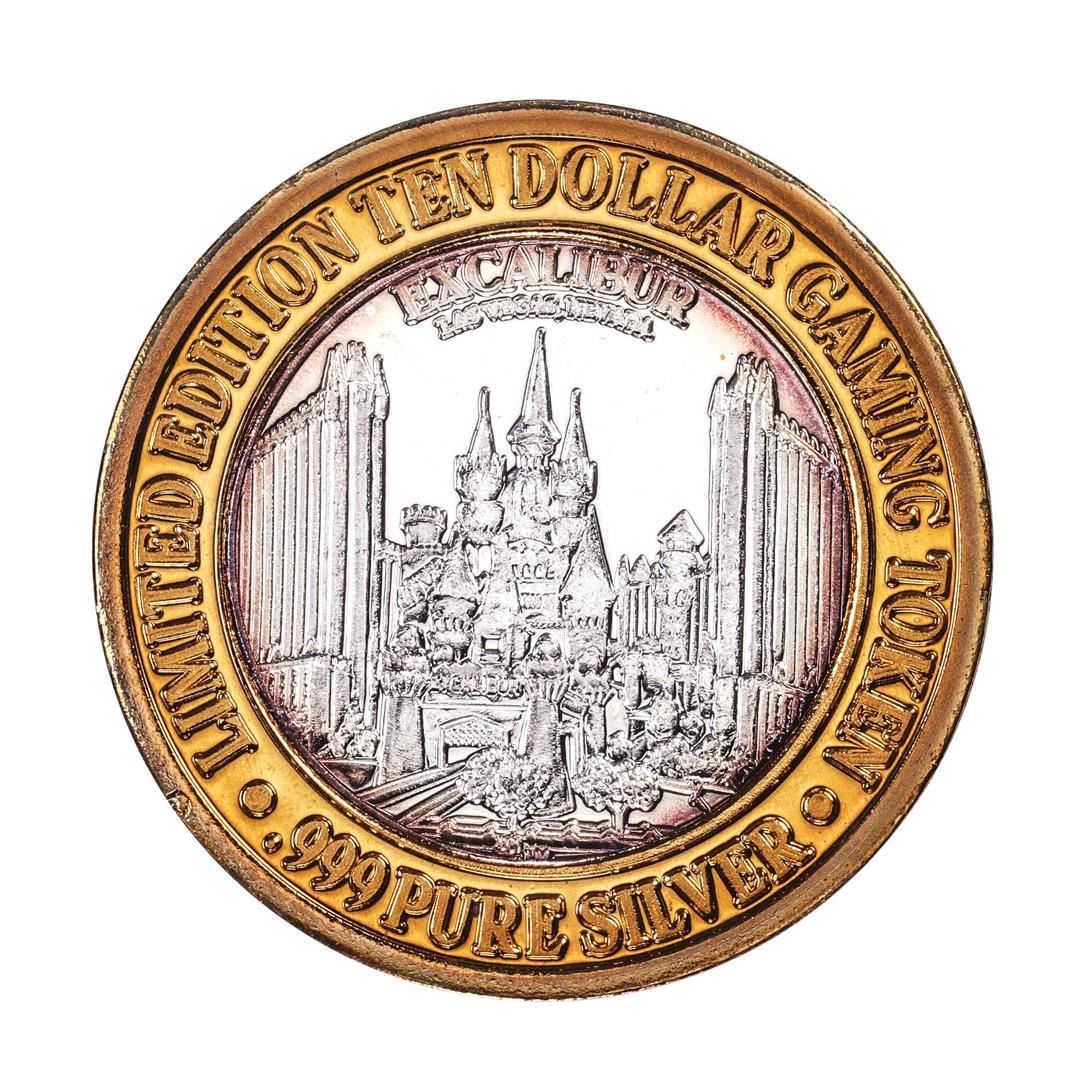 One .999 Fine Silver Excalibur Las Vegas, Nevada $10 Limited Edition Gaming Token.