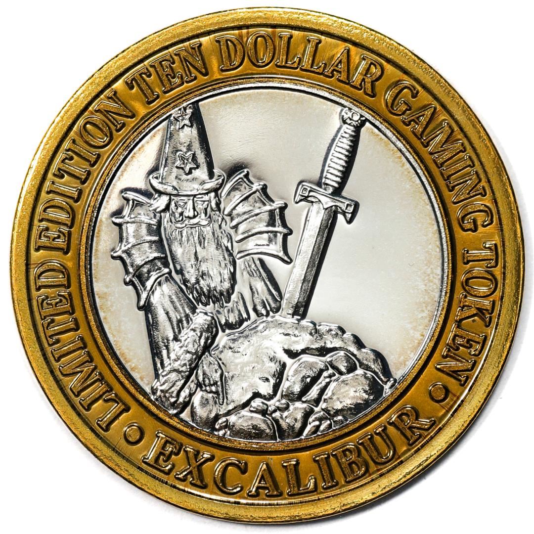 One .999 Fine Silver Excalibur Las Vegas, Nevada $10 Limited Edition Gaming Token.
