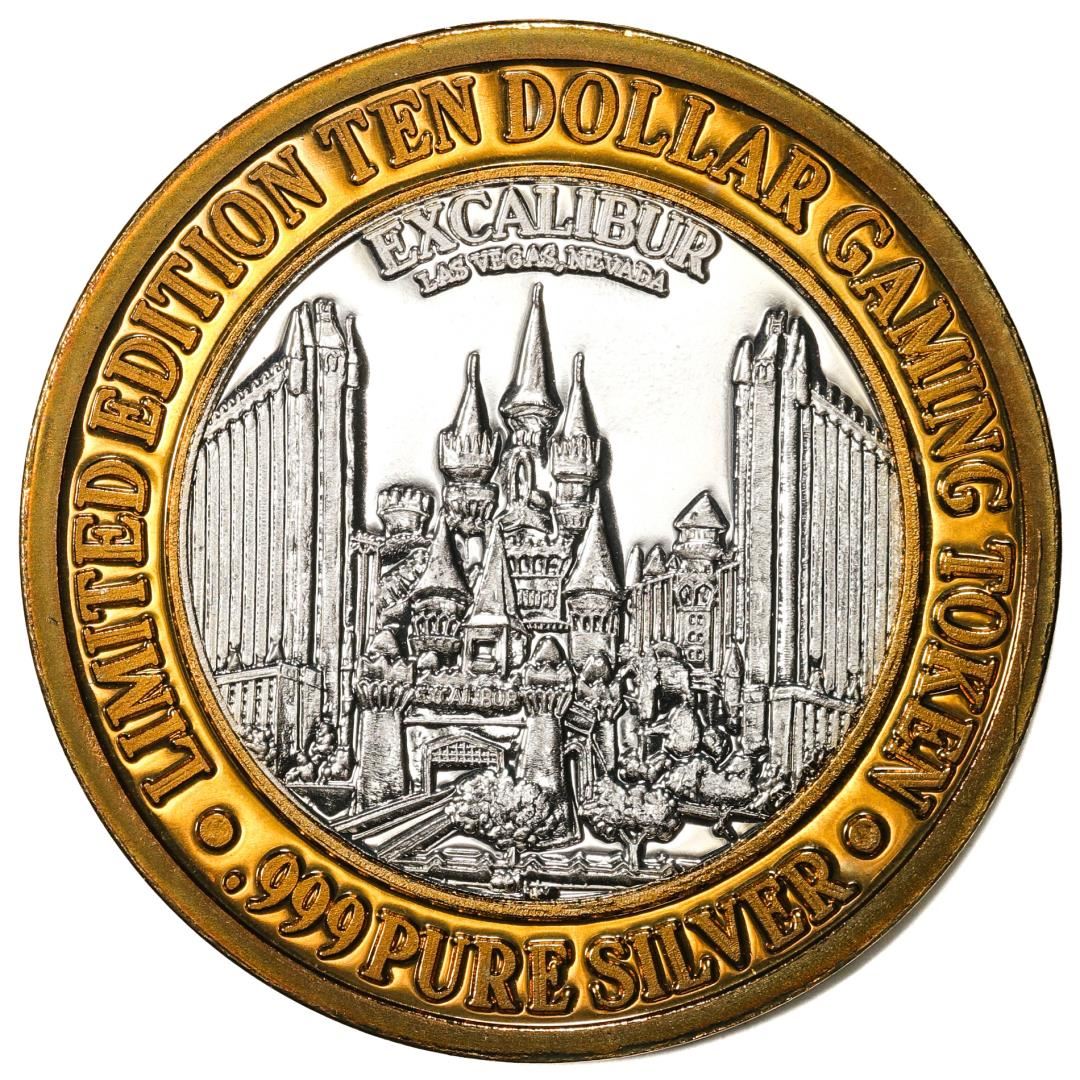 One .999 Fine Silver Excalibur Las Vegas, Nevada $10 Limited Edition Gaming Token.