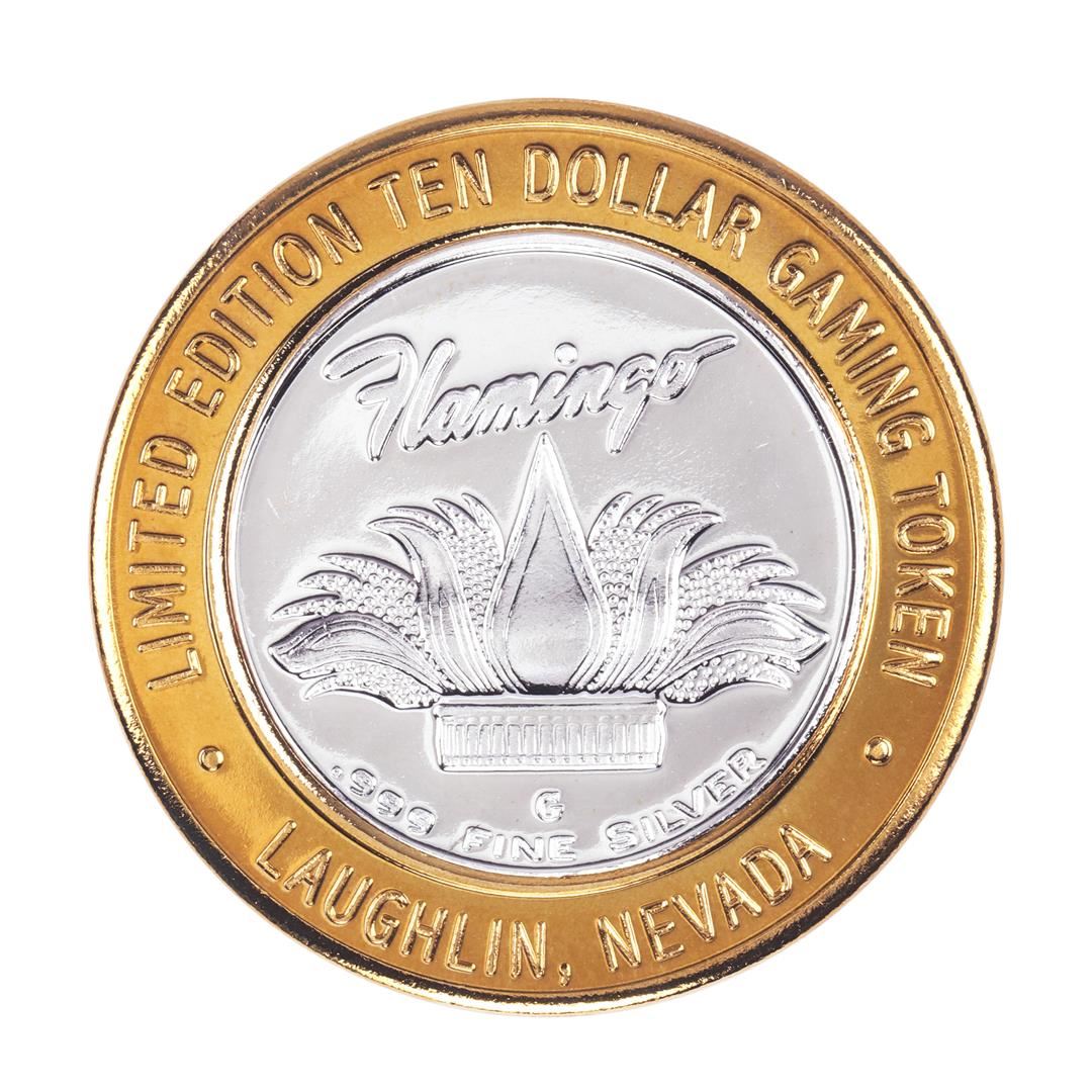 One .999 Fine Silver Flamingo Laughlin, Nevada $10 Limited Edition Gaming Token.