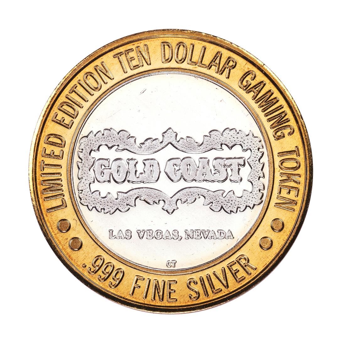One .999 Fine Silver Gold Coast Las Vegas $10 Casino Limited Edition Gaming Token.