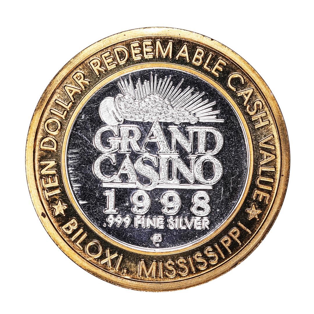 One .999 Fine Silver Grand Casino Biloxi, MS $10 Limited Edition Gaming Token.