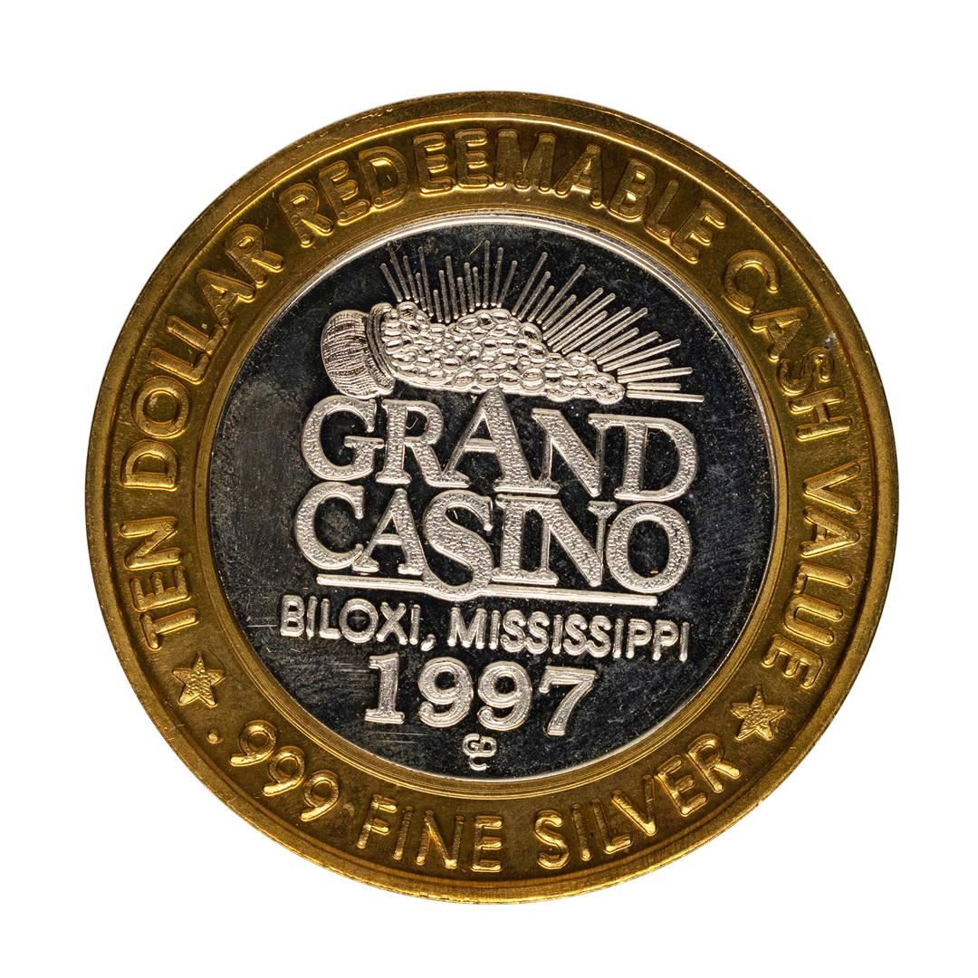 One .999 Fine Silver Grand Casino Biloxi, Mississippi $10 Limited Edition Gaming Token.