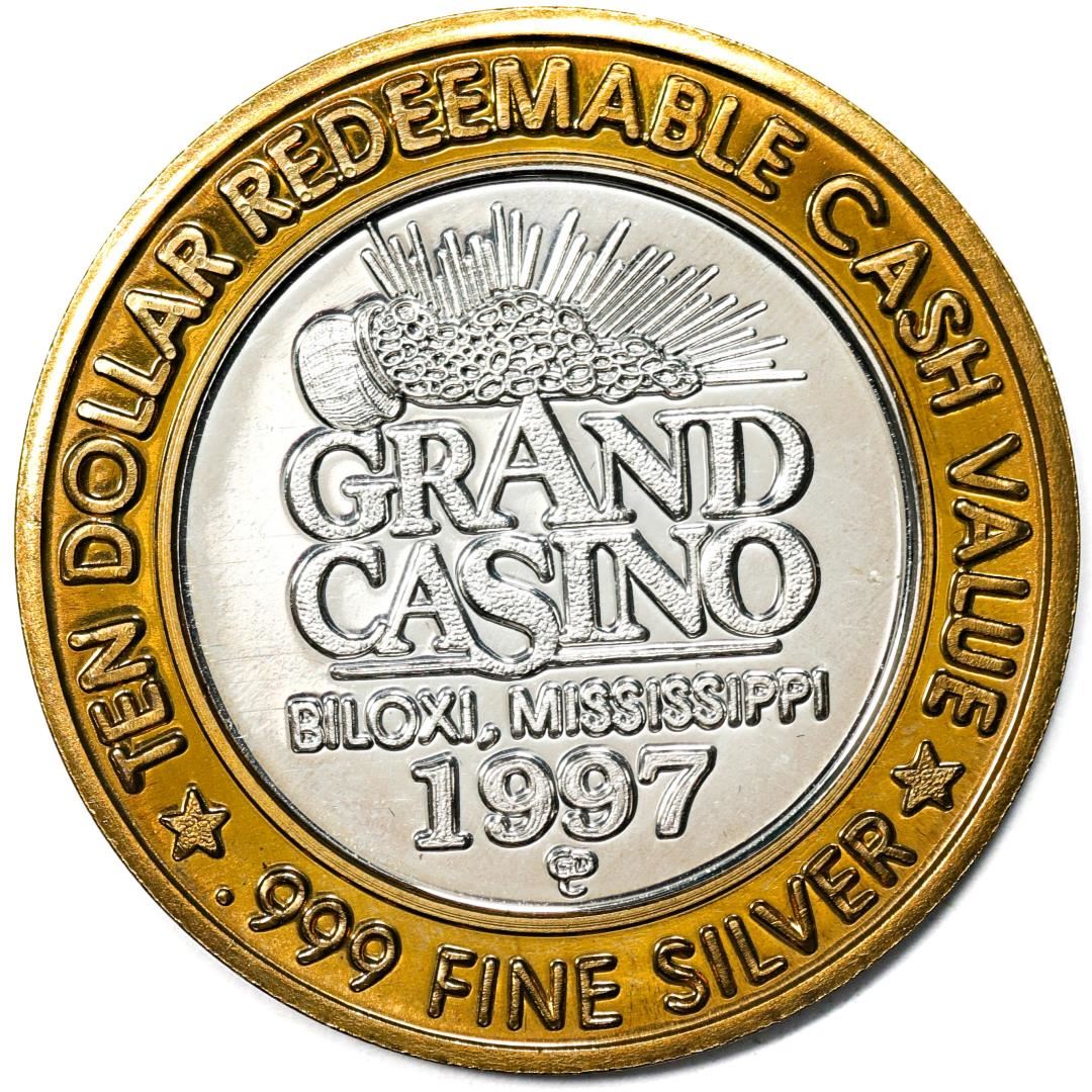 One .999 Fine Silver Grand Casino Biloxi, Mississippi $10 Limited Edition Gaming Token.