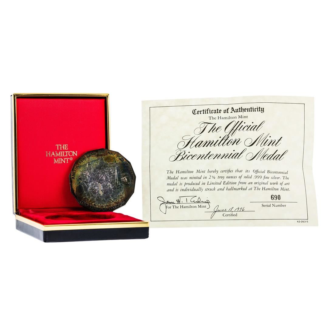 One .999 Fine Silver Hamilton Mint Bicentennial Medal.