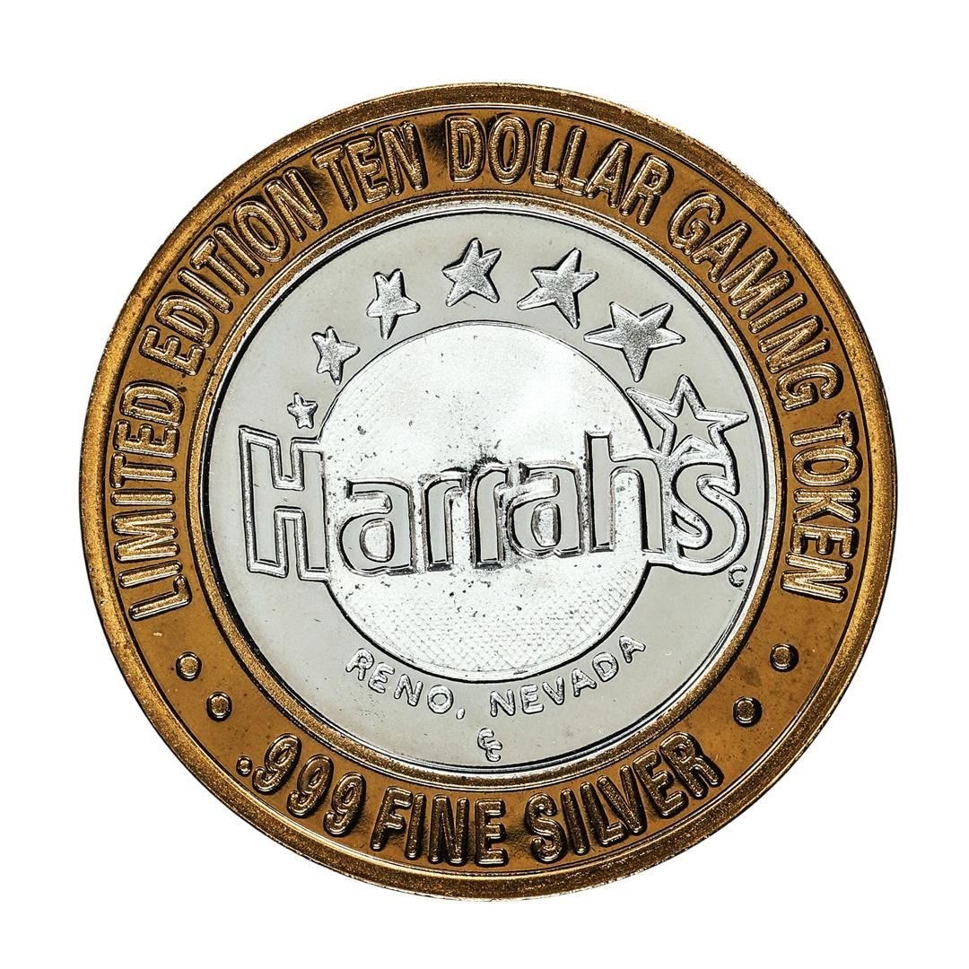 One .999 Fine Silver Harrah's Reno, Nevada $10 Casino Limited Edition Gaming Token.
