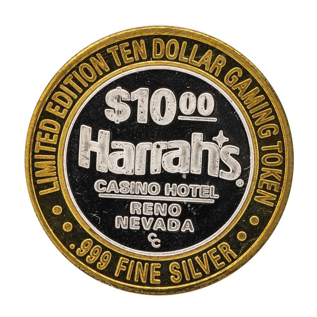 One .999 Fine Silver Harrah's Reno, Nevada $10 Casino Limted Edition Gaming Token.