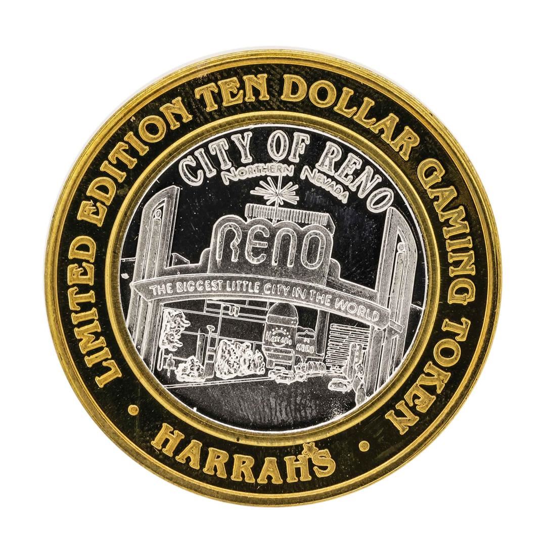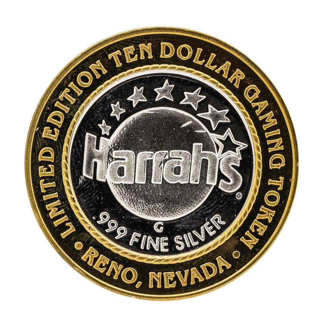 One .999 Fine Silver Harrah's Reno, Nevada $10 Casino Limted Edition Gaming Token.