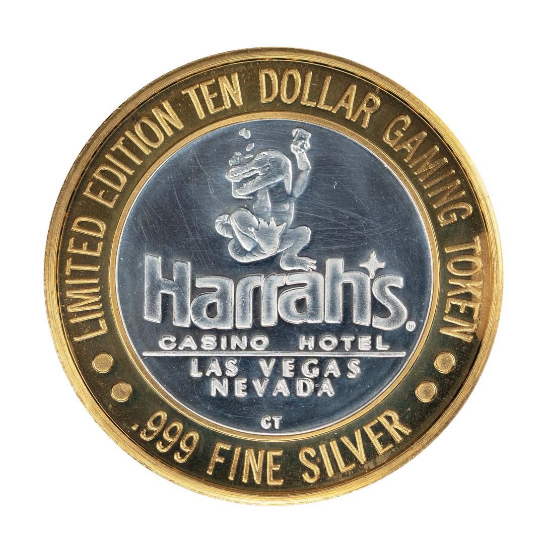 One .999 Fine Silver Harrahs Casino Las Vegas, Nevada $10 Limited Edition Gaming Token.