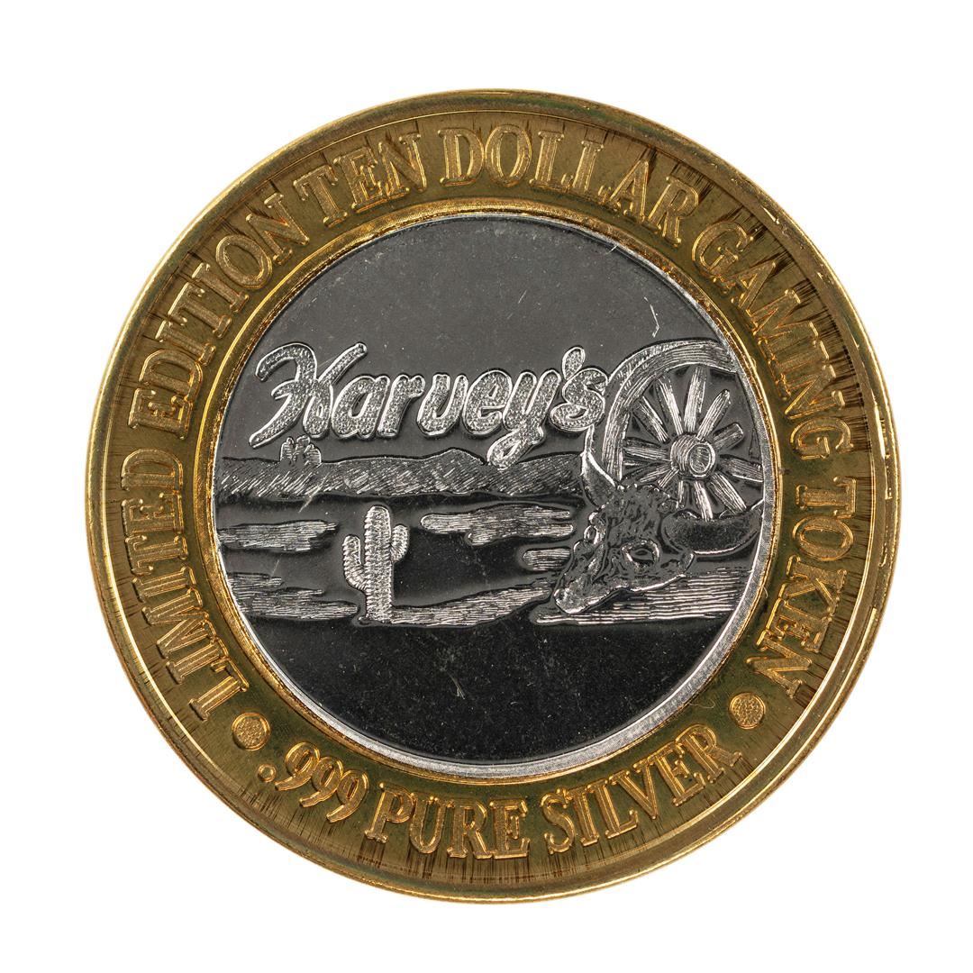 One .999 Fine Silver Harveys Resort Lake Tahoe, Nevada $10 Limited Edition Gaming Token.