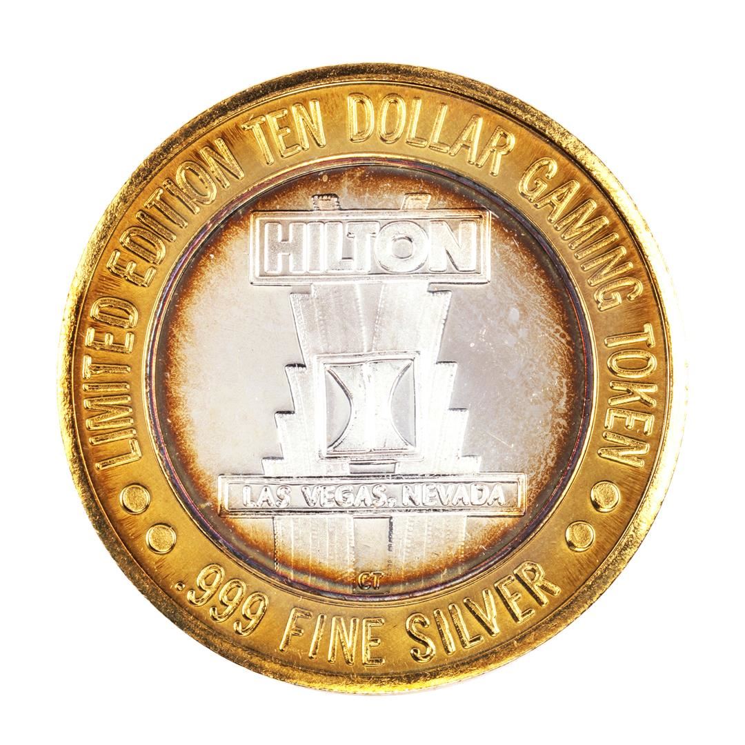 One .999 Fine Silver Hilton Las Vegas, Nevada $10 Casino Limited Edition Gaming Token.