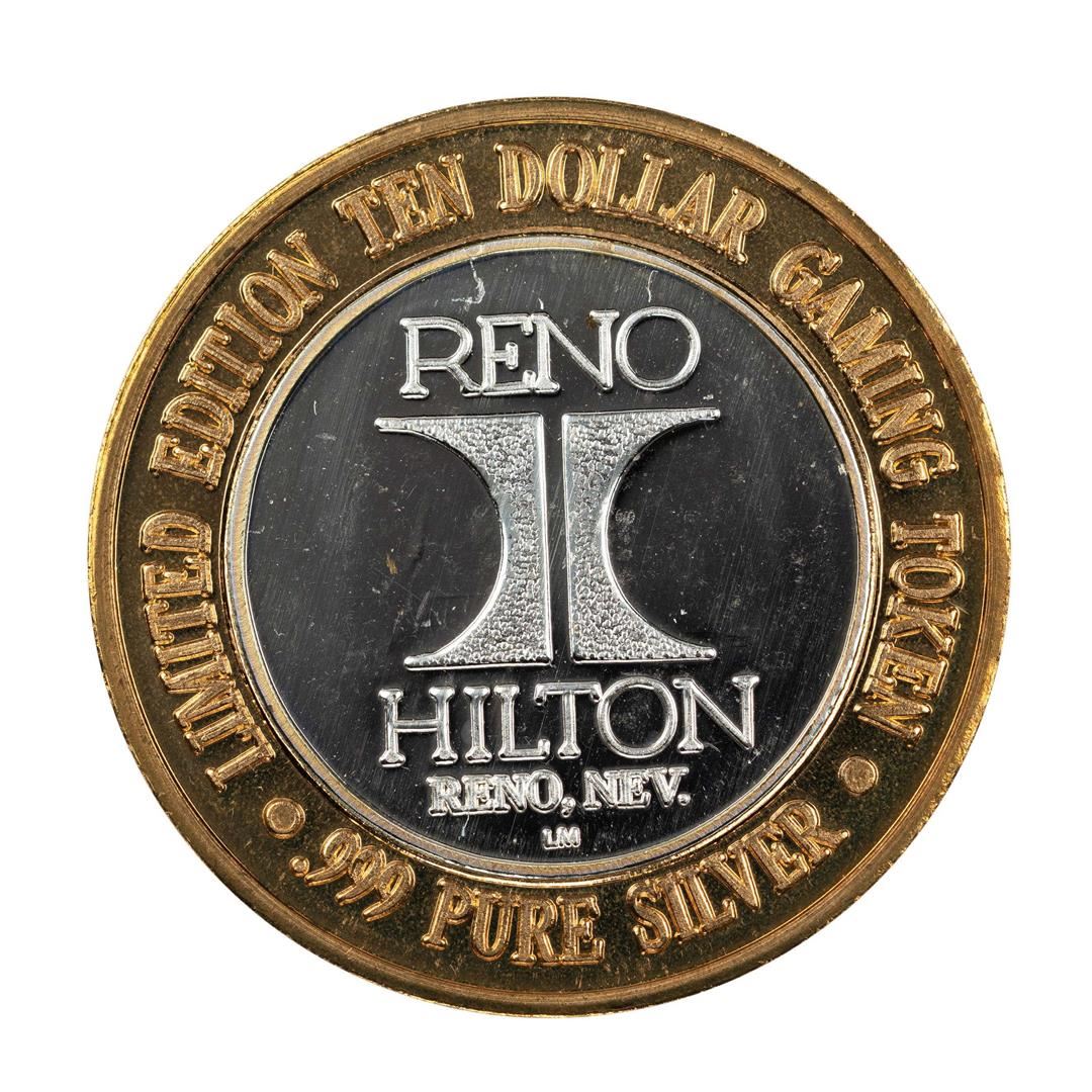 One .999 Fine Silver Hilton Reno, Nevada $10 Limited Edition Gaming Token.