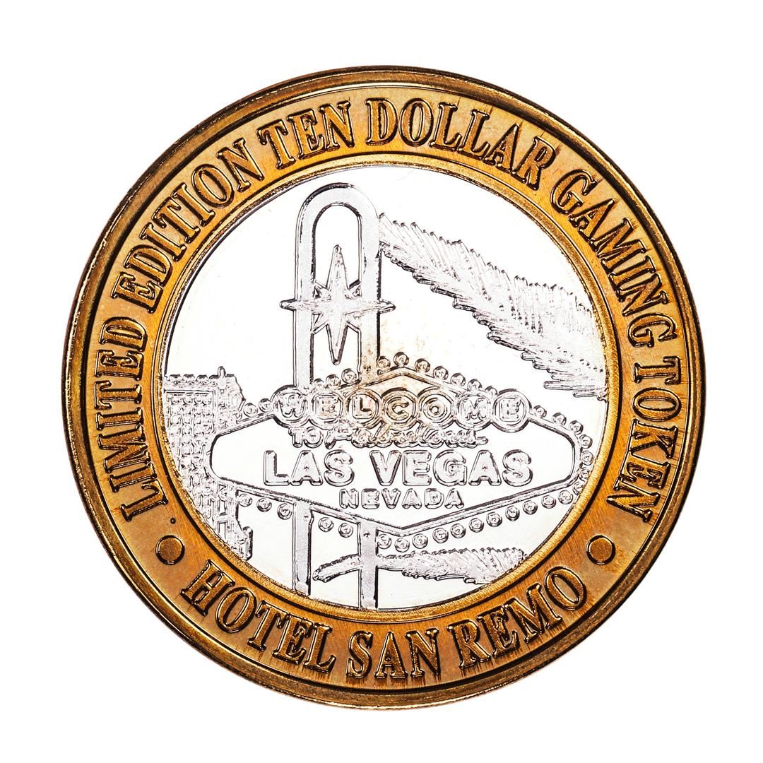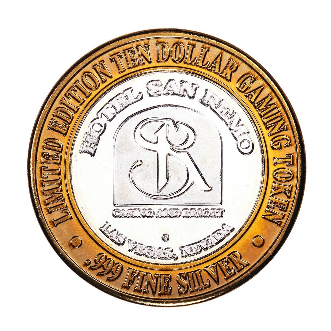 One .999 Fine Silver Hotel San Remo Las Vegas, Nevada $10 Limited Edition Gaming Token.