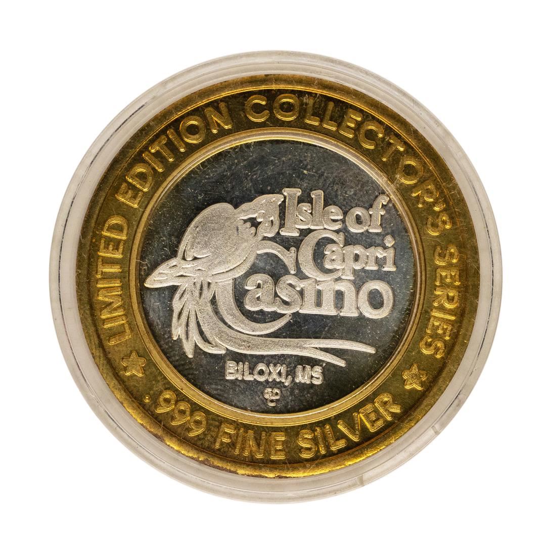 One .999 Fine Silver Isle of Capri Casino Biloxi, MS $10 Limited Edition Gaming Token.
