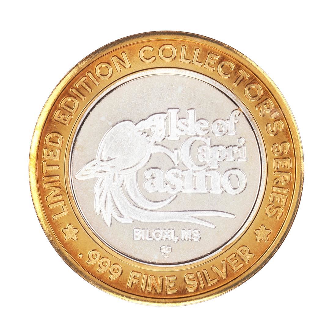 One .999 Fine Silver Isle of Capri Casino Biloxi, MS $10 Limited Edition Gaming Token.