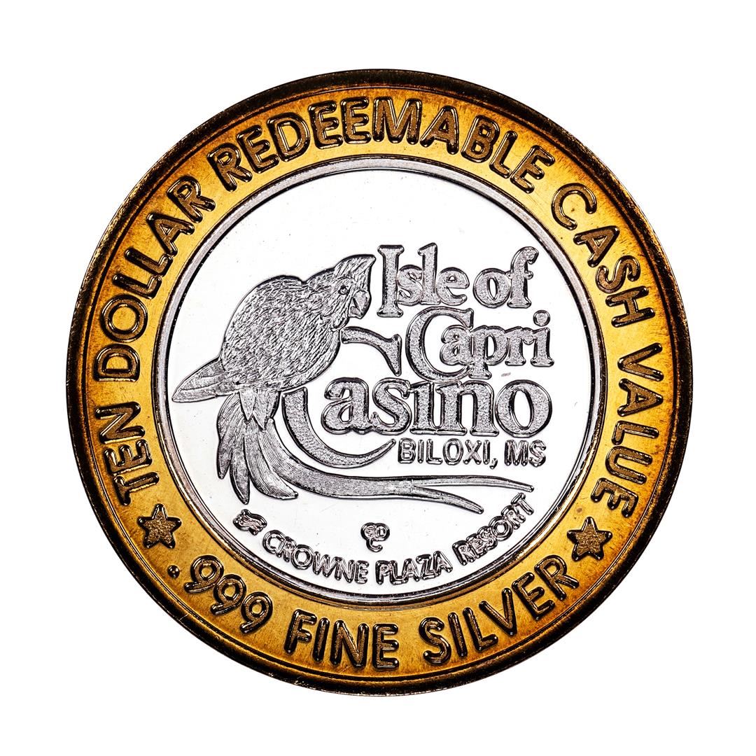 One .999 Fine Silver Isle of Capri Casino Biloxi, MS $10 Limited Edition Gaming Token.