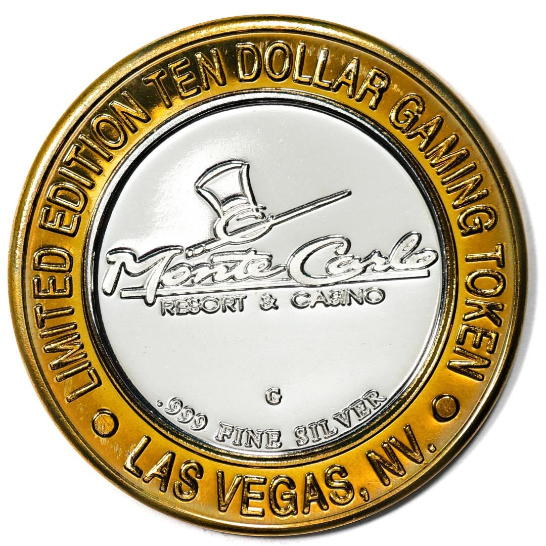 One .999 Fine Silver Monte Carlo Las Vegas, Nevada $10 Limited Edition Gaming Token.
