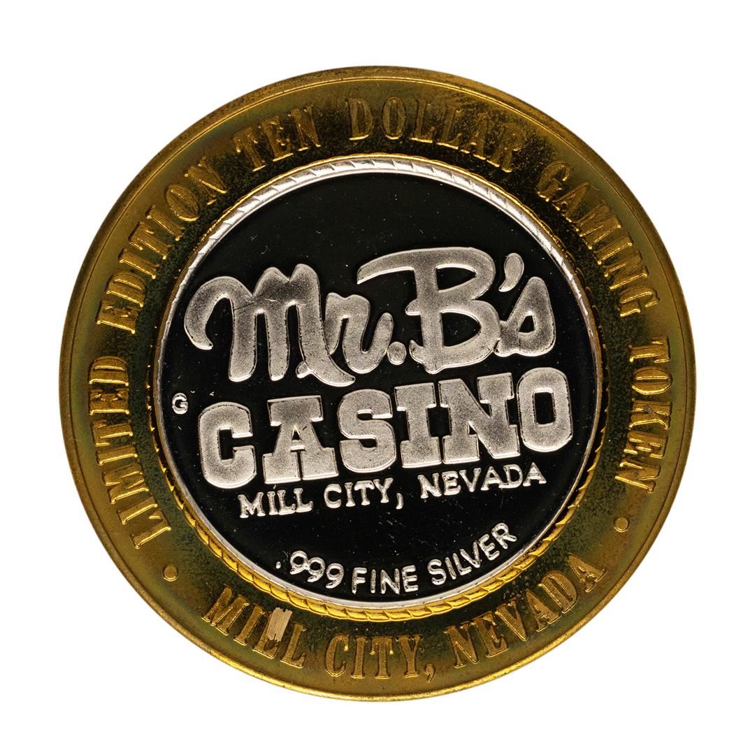 One .999 Fine Silver Mr. B's Casino Mill City, Nevada $10 Limited Edition Gaming Token.