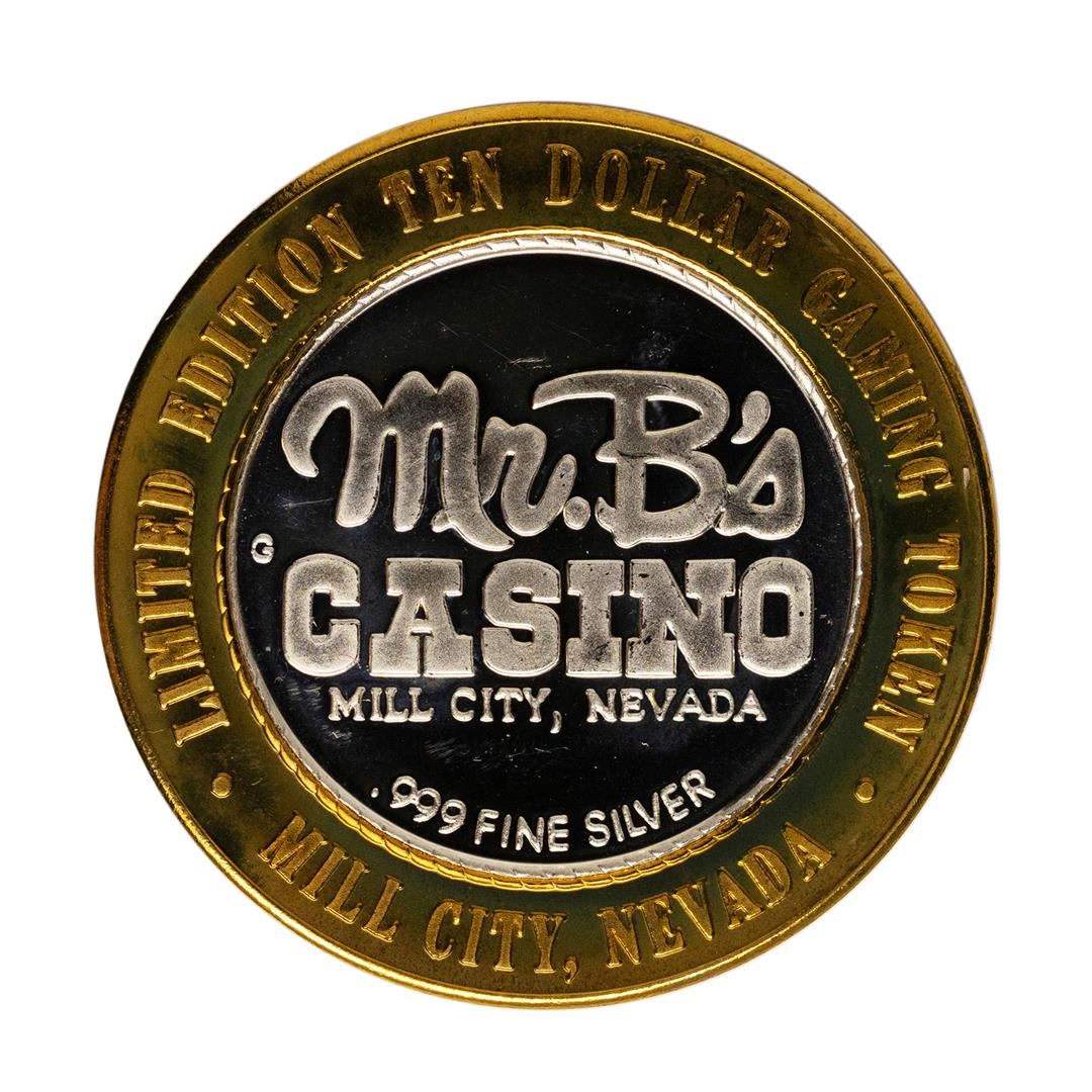One .999 Fine Silver Mr. B's Casino Mill City, Nevada $10 Limited Edition Gaming Token.