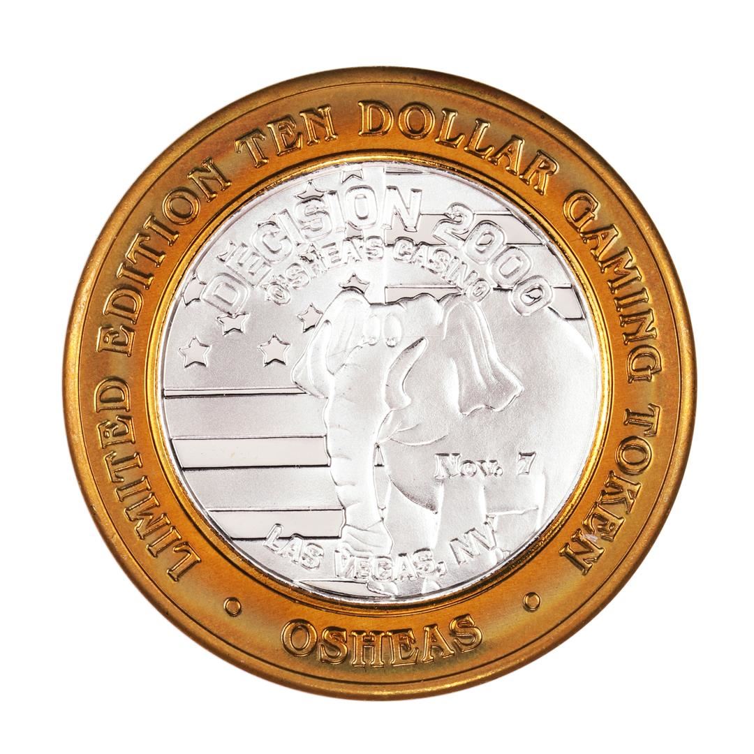 One .999 Fine Silver Osheas Las Vegas, Nevada $10 Limited Edition Gaming Token.