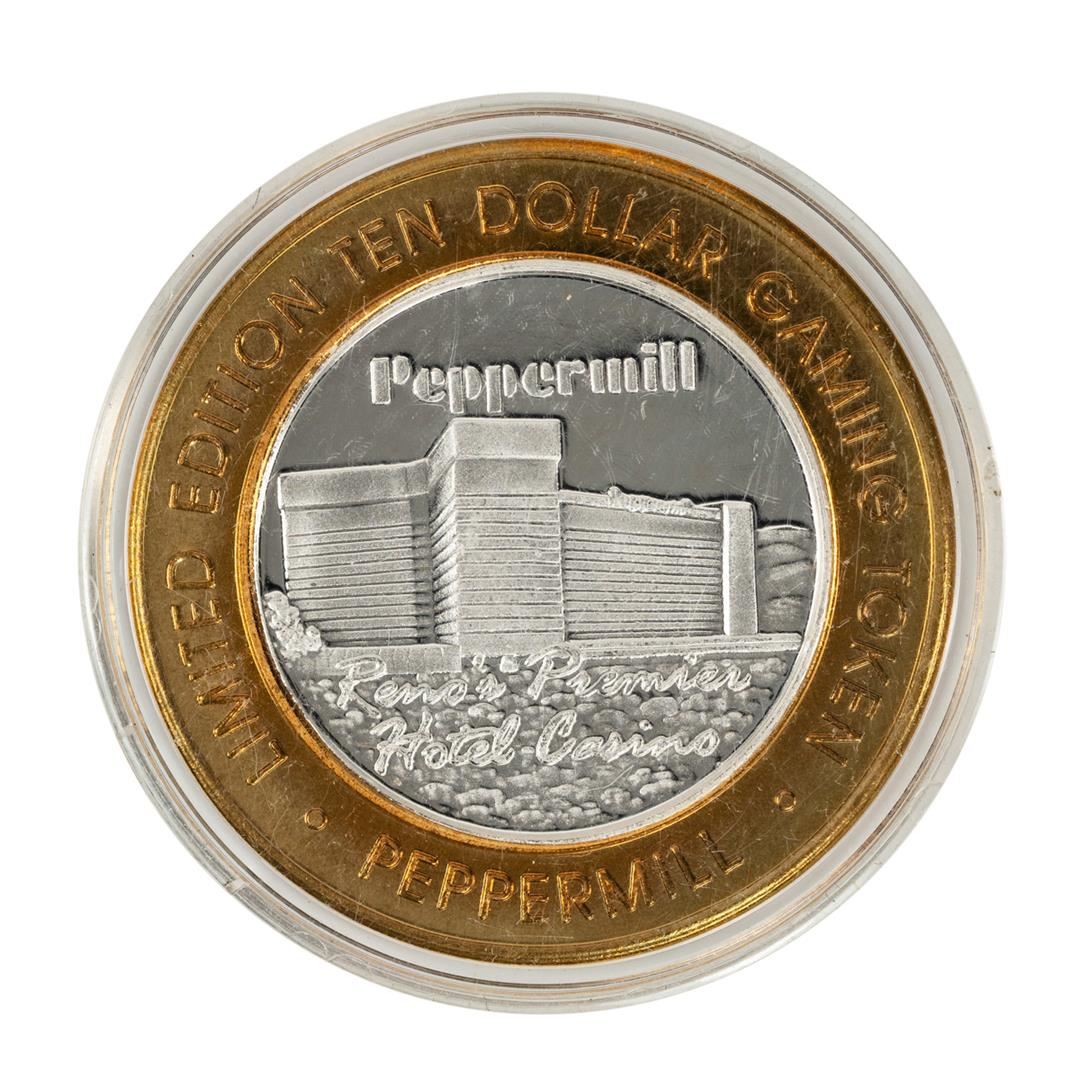 One .999 Fine Silver Peppermill Reno, Nevada $10 Limited Edition Gaming Token.
