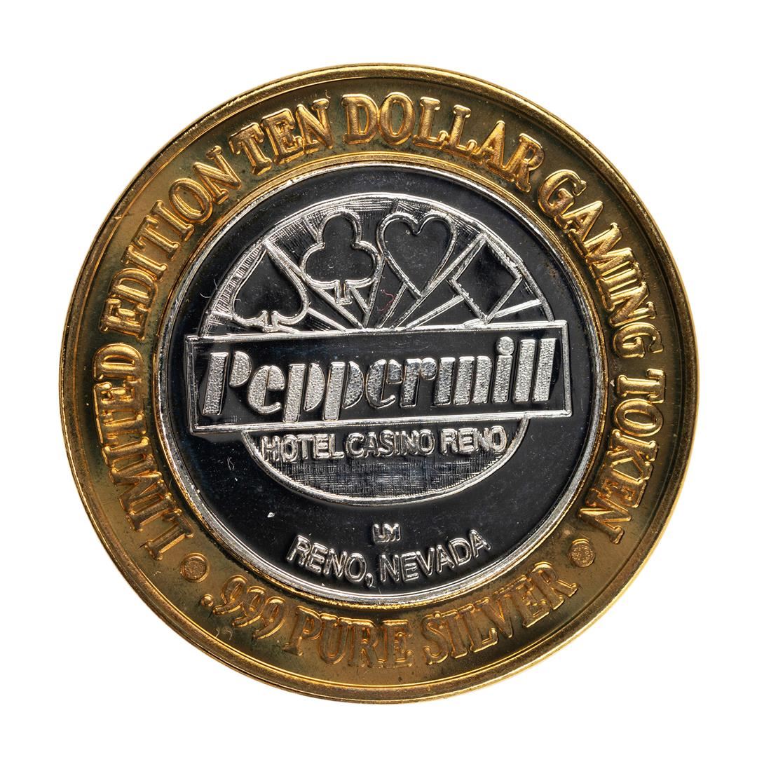 One .999 Fine Silver Peppermill Reno, Nevada $10 Limited Edition Gaming Token.