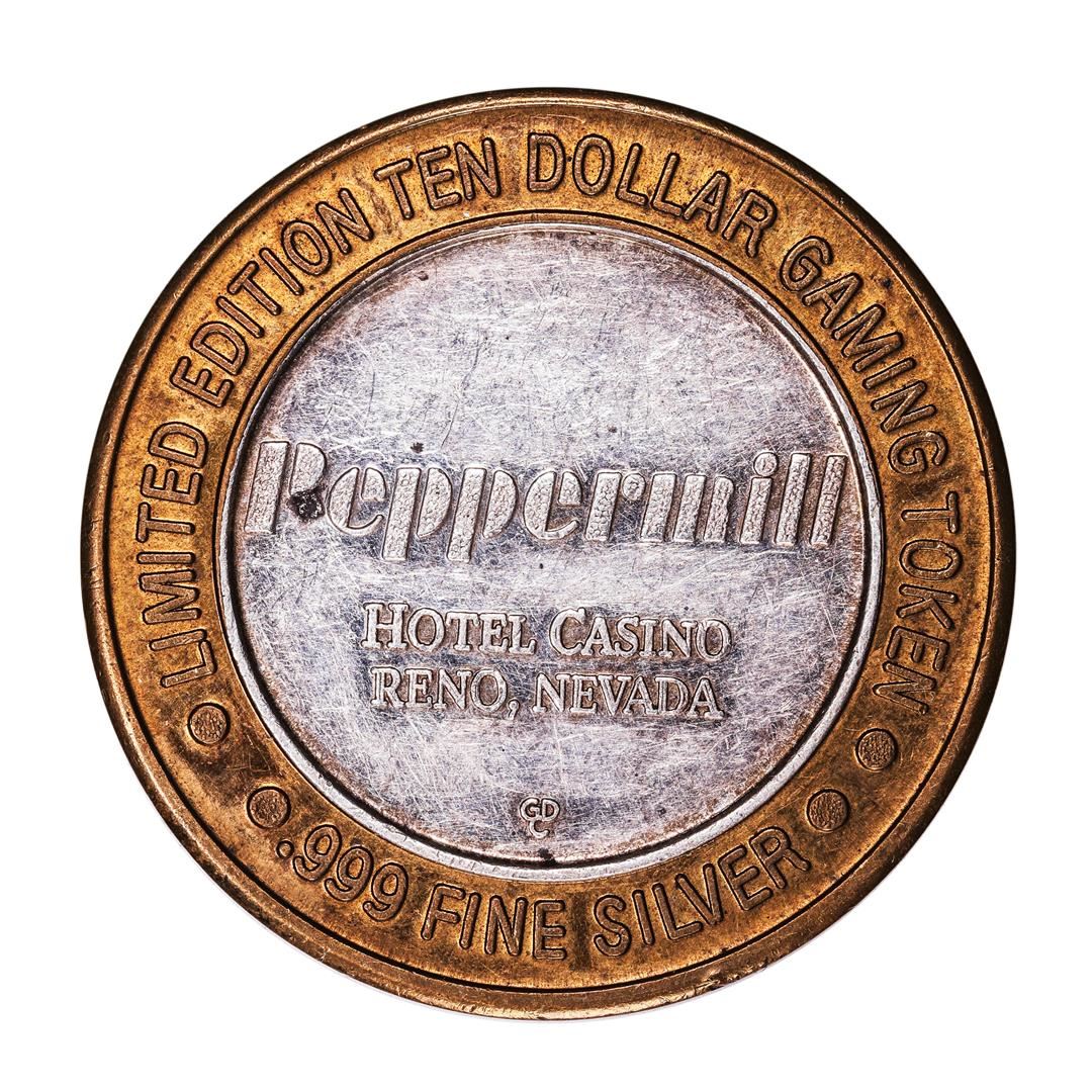 One .999 Fine Silver Peppermill Reno, Nevada $10 Limited Edition Gaming Token.