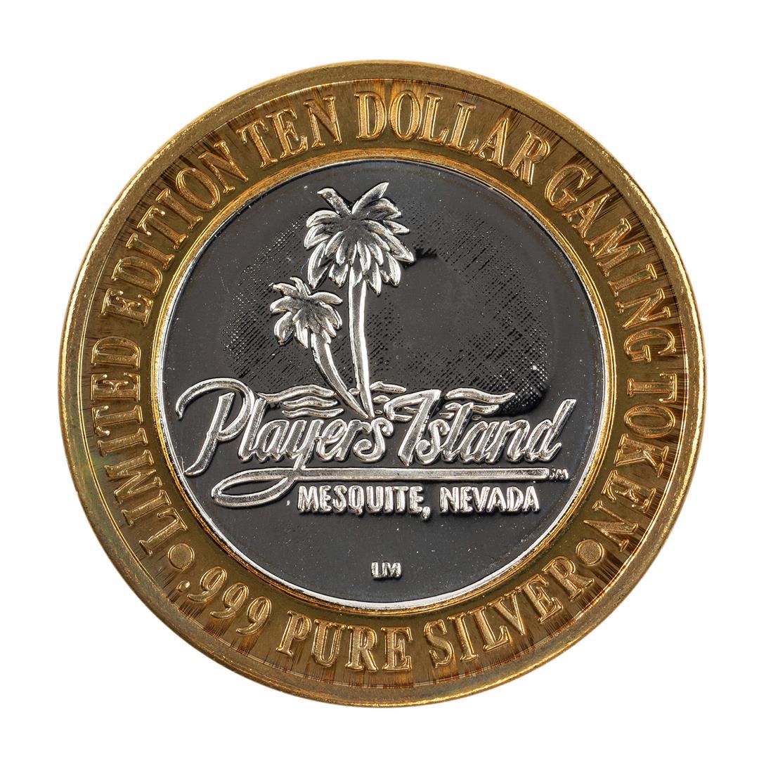 One .999 Fine Silver Players Island Casino $10 Casino Limited Edition Gaming Token.