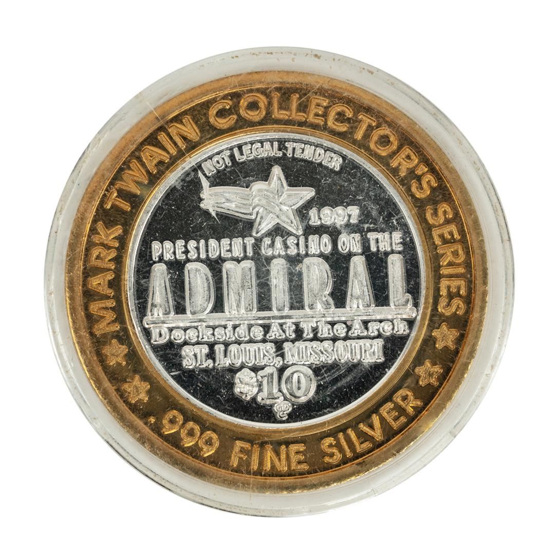 One .999 Fine Silver President Casino on the Admiral $10 Limited Edition Gaming Token.