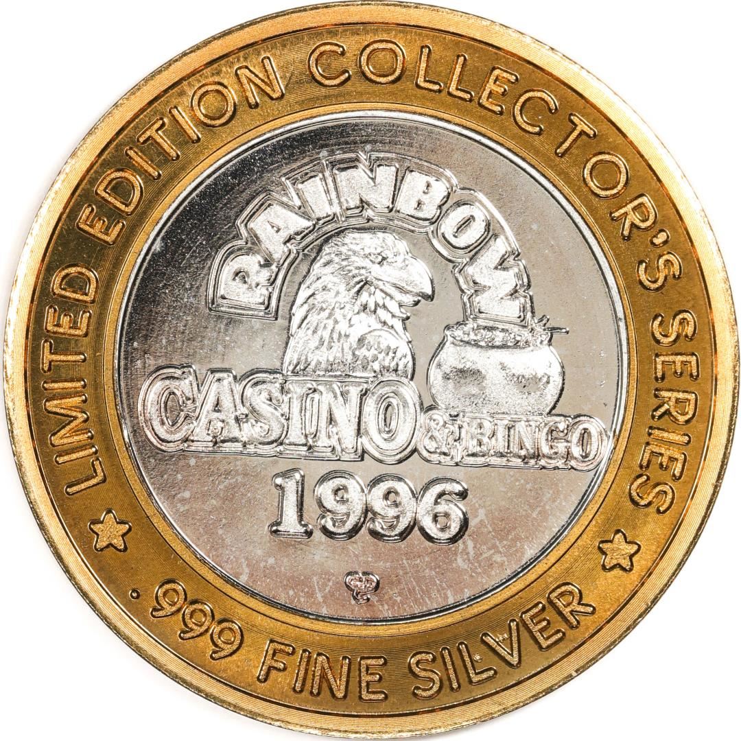 One .999 Fine Silver Rainbow Casino & Bingo $10 Limited Edition Gaming Token.